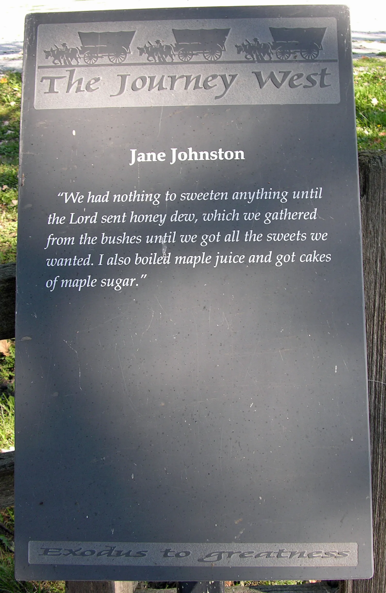 We had nothing to sweeten anything with until the Lord sent honey dew, which we gathered from the bushes until we had all the sweets we wanted. I also boiled maple juice and got cakes of maple sugar.