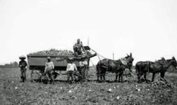 Unlike many crops, there were a number of things that happened over the summer as the beet plant matures. In 1930’s these processes were as follows: • A horse drawn machine went down each row and inserted the seeds into the ground. • The seedlings were “thinned” out by hand when they are a few inches tall. • The plants are “blocked” using a hoe to provide adequate space between beets. • Grown beets are pulled using a knife with hook on it and the top cut off. The average size of a beet is 2 lb and 14 inches long. The knife used was about 14 inches long with a hook on the end. Very dangerous. • Horses pull a wagon down rows and “topped” beets were loaded on wagon. • Wagon loaded with “topped” beets are taken to the “beet dump’.