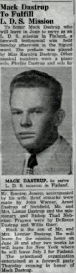 Mack Dastrup and I are 2nd cousins. John Dastrup was my grandfather and Mack’s grandfather was Jacob Dastrup. We were inseparable when we were growing up and always viewed each other as brothers.